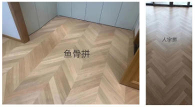 鋪貼出來的形狀像魚骨。拼貼尺寸較多,拼貼角度有45度角和60度角。