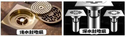 地漏內(nèi)部有一個U型存水彎,起到防臭作用。根據(jù)存水彎的深淺,又分為:淺水封地漏、深水封地漏。